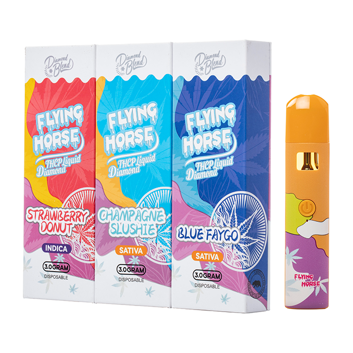 Check out the Flying Horse THCP Liquid Diamonds Disposable, offering 3-grams of THCP liquid diamonds balanced with terpenes to create an uplifting blend.
